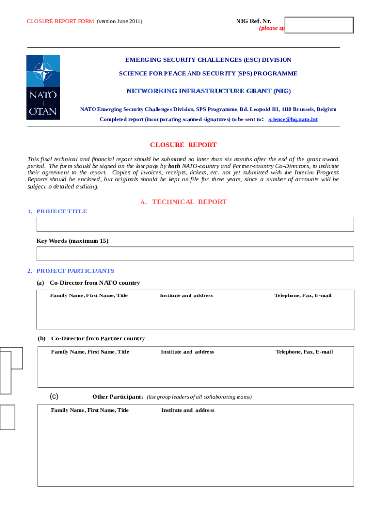 How to fill NATO Science for Peace and Security (SPS) Programme word template