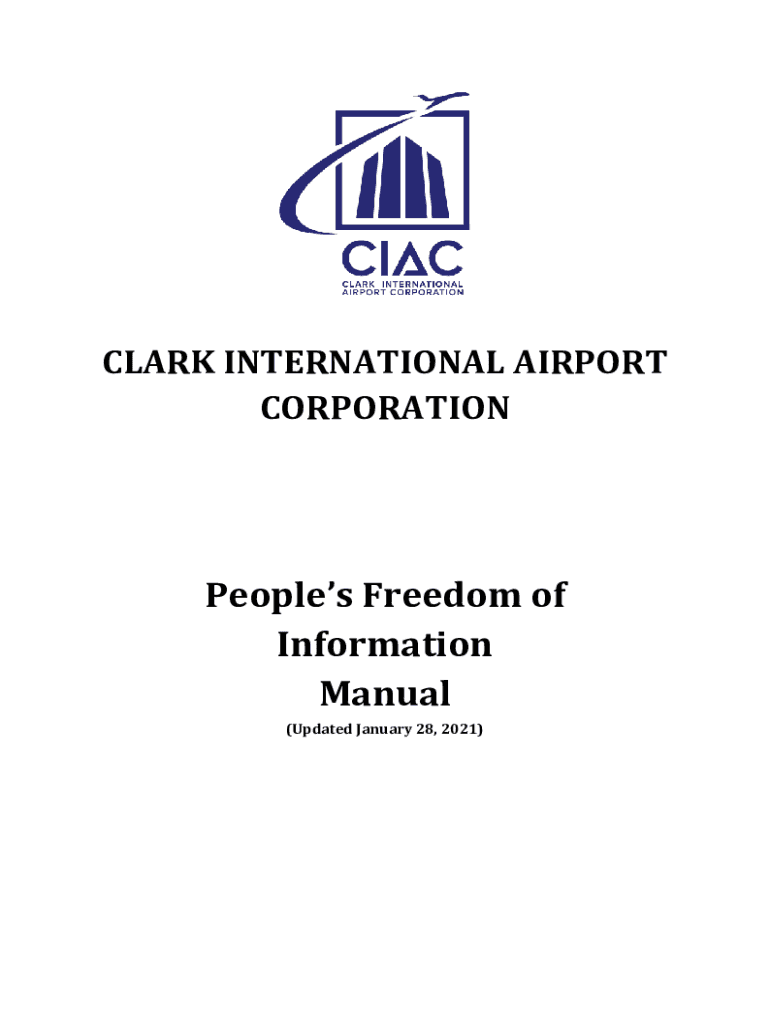 CLARK INTERNATIONAL AIRPORT CORPORATIONPeoples Freedom of Information Manual (Updated January 28, 2021)FOREWORD The peoples right to information is guaranteed and enshrined in the Constitution. To