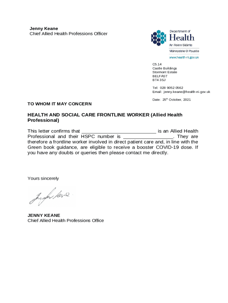 Instructions for the HEALTH AND SOCIAL CARE FRONTLINE WORKER (Allied ... form