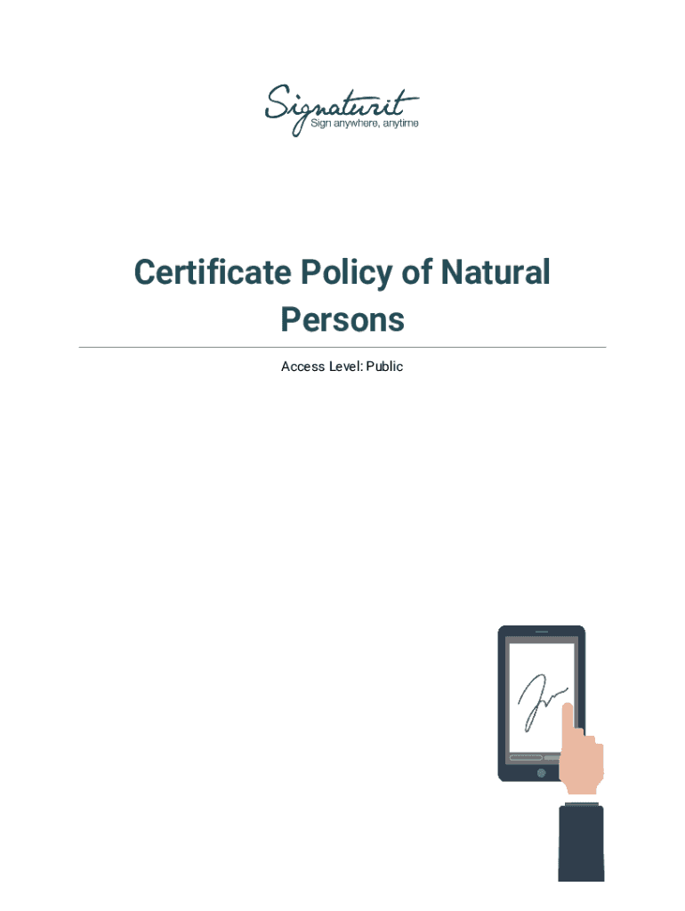 Certificate Policy of Natural Persons Access Level: PublicCopyright Notice Certificate Policy of Natural Persons of Signatures PKI 2019 Signature Solutions, S.L., all rights reserved. Notwithstanding