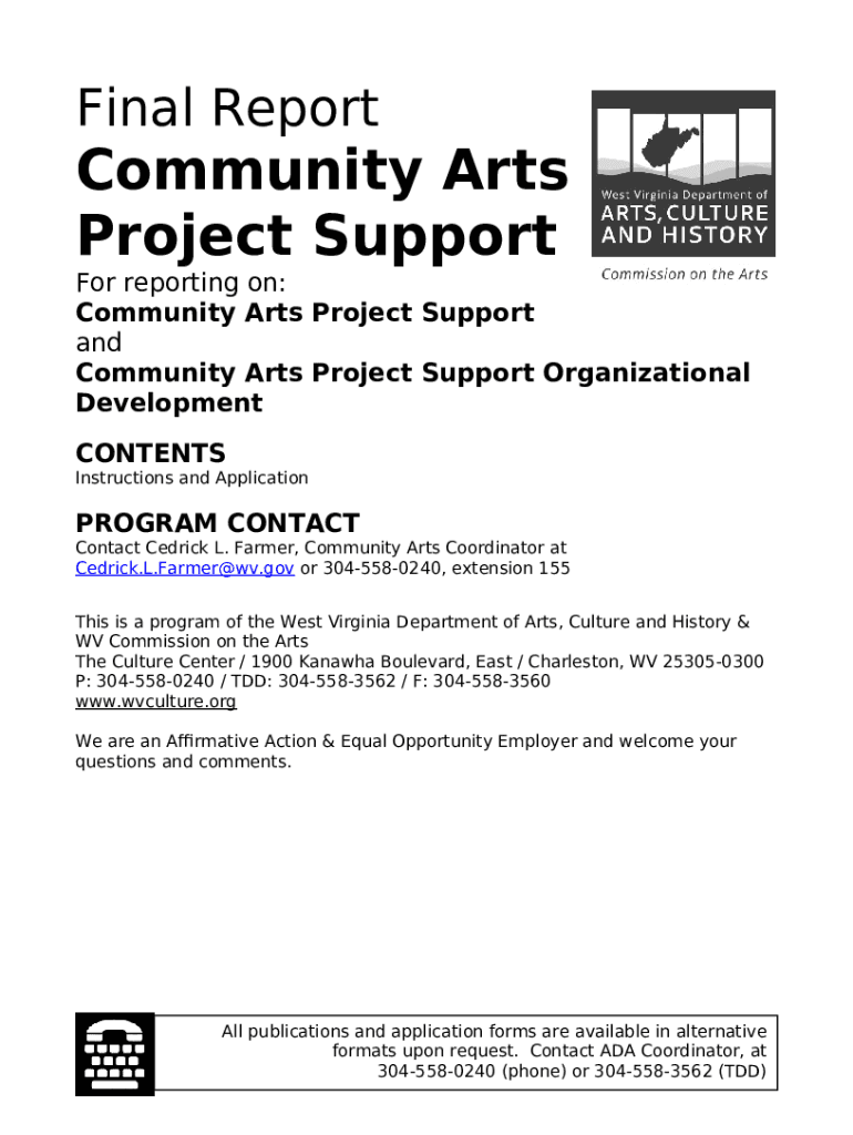 Frequently asked questions about the form Community Arts Project Support Grant - WV Culture