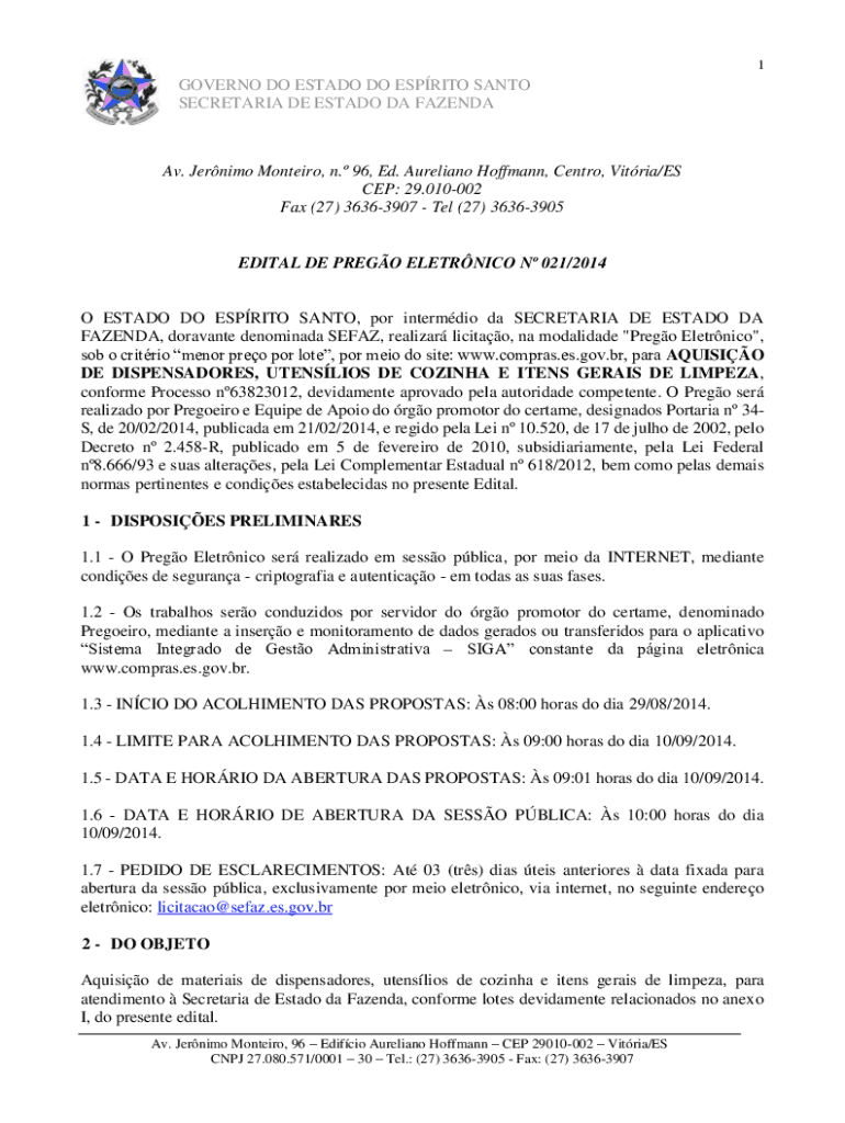 SECRETARIAT DE ESTATE DA FAZENDAAv. Jerónimo Monterey, n. 96, Ed. Aurelia no Hoffmann, CENTR, Vitoria/ES