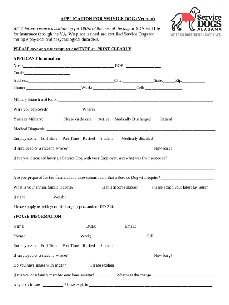 Apply for a Dog - Foundation For Service Dog Support template instructions