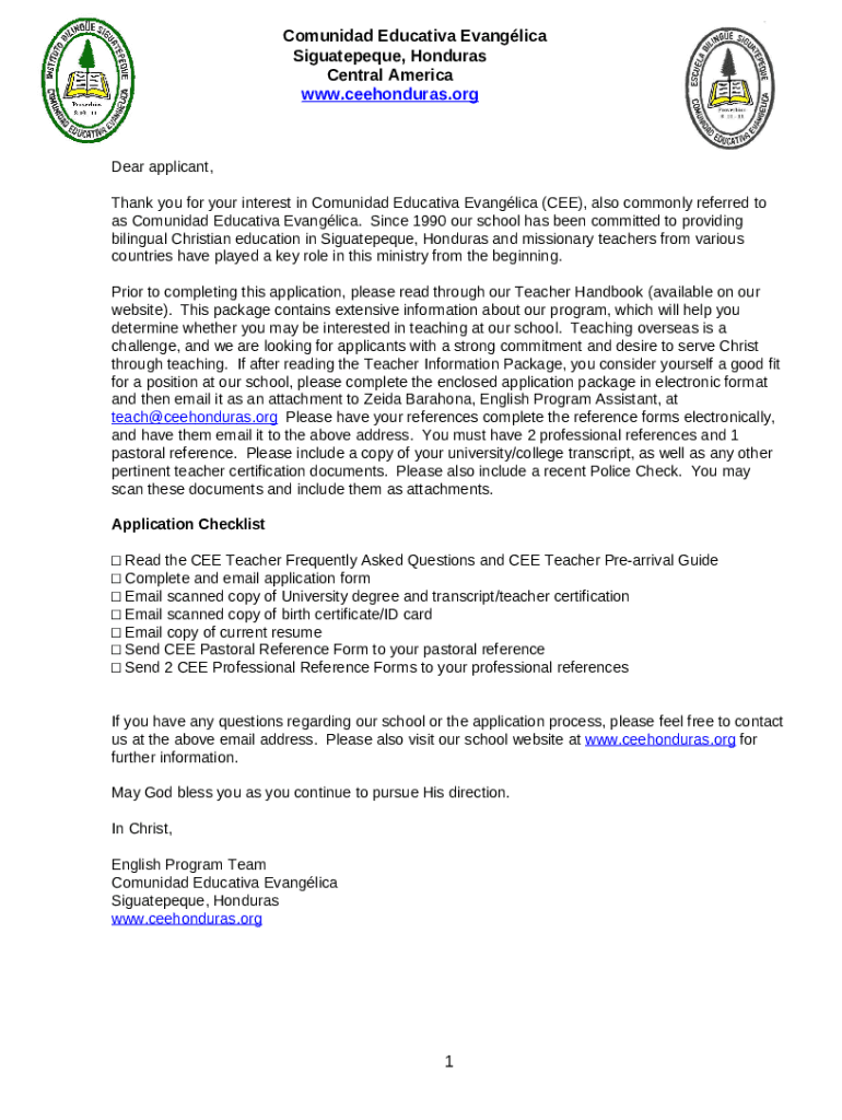 Instructions for the Siguatepeque Bilingual Christian School - CEE Honduras form