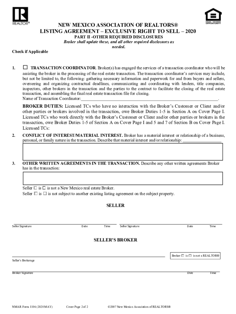 NEW MEXICO ASSOCIATION OF REALTORS LISTING AGREEMENT EXCLUSIVE RIGHT TO SELL 2020 PART I BROKERS DUTIES Per New Mexico law, Brokers are required to perform a specific set of applicable Broker Duties.