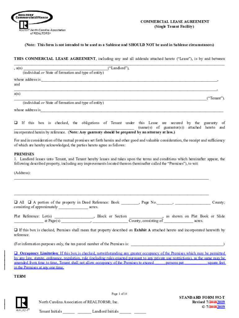 Get the free North Carolina Commercial Lease Agreement Realtor Version (Single Tenant Facility)
