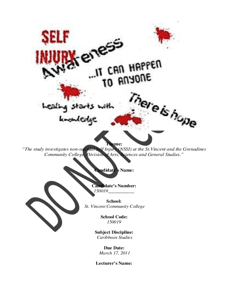 Theme: The study investigates nonsuicidal Self Injury (MSSI) at the St. Vincent and the Grenadines Community College, Division of Arts, Sciences and General Studies. Candidates Name:Candidates Number: