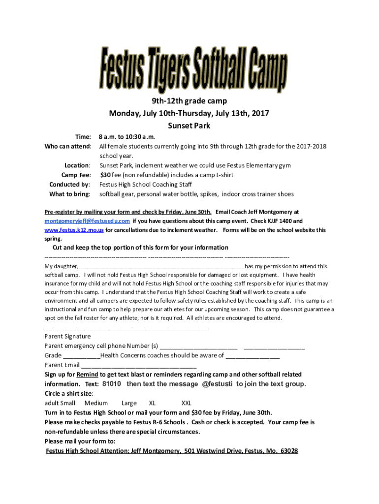 9th12th grade camp Monday, July 10thThursday, July 13th, 2017 Sunset Park Time: Who can attend: Location: Camp Fee: Conducted by: What to bring:8 a.m. to 10:30 a.m. All female students currently going