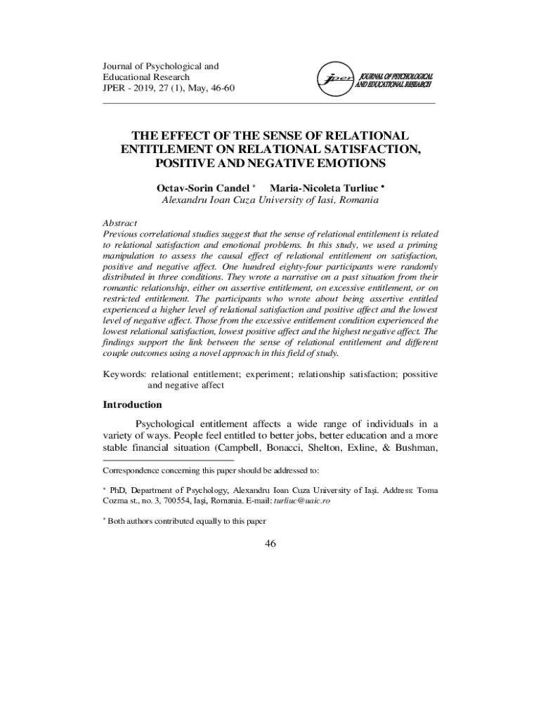 ENTITLEMENT ON RELATIONAL SATISFACTION,