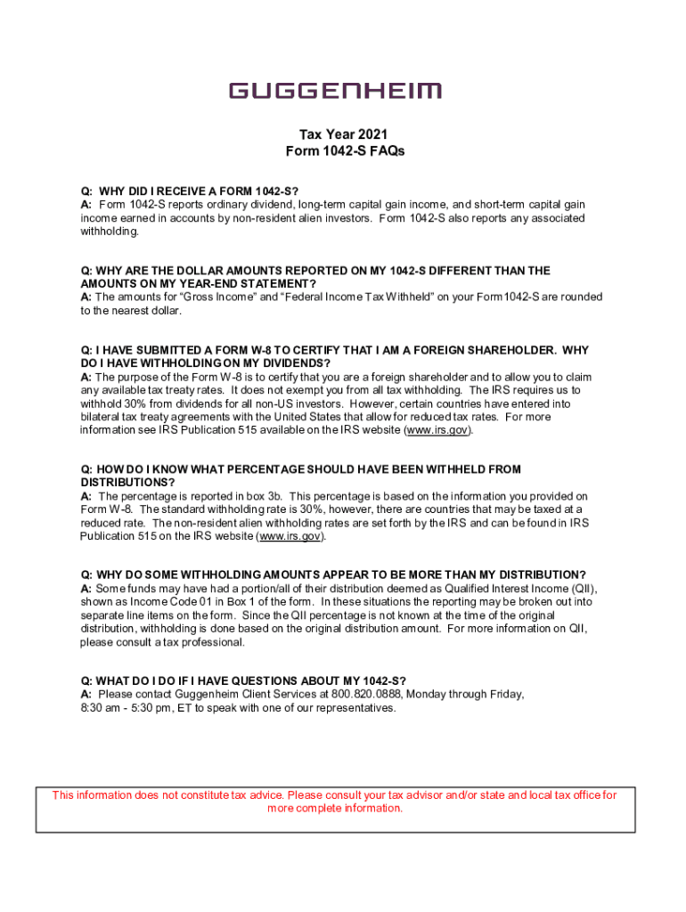 Tax Year 2021 Form 1042S FAQs Q: WHY DID I RECEIVE A FORM 1042S? A: Form 1042S reports ordinary dividend, long term capital gain income, and short term capital gain income earned in accounts by nonresident