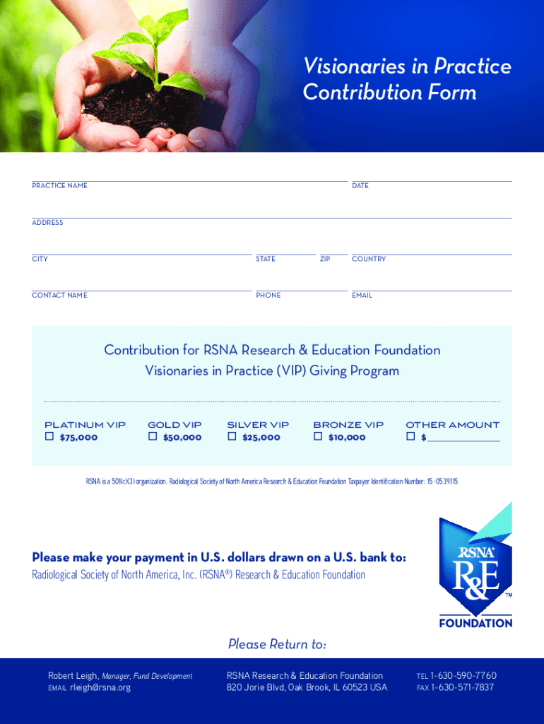 Contribution FormPRACTICE NAMEDATEADDRESSCITYSTATEZIPCOUNTRYCONTACT NAMEPHONEEMAILContribution for RNA Research & Education Foundation