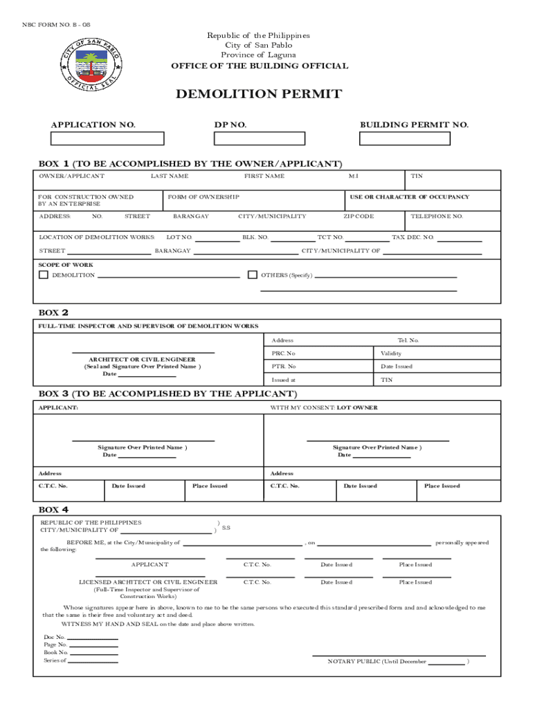 OFFICE OF THE BUILDING OFFICIALDEMOLITION PERMIT