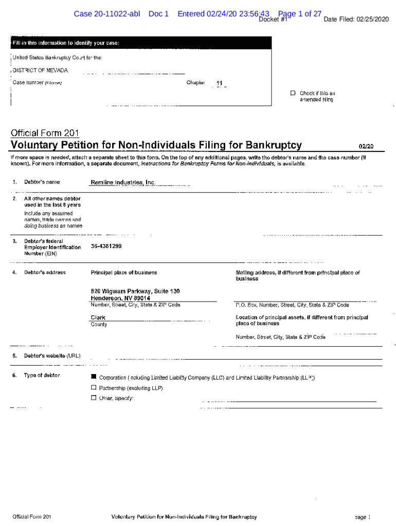 Get the free Case 20-11022-abl Doc 1 Entered 02/24/20 23:56:43 Page ...