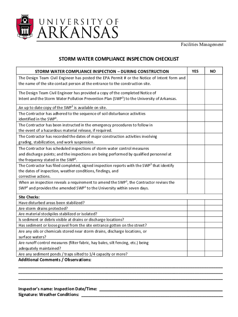Get the free STORM WATER COMPLIANCE INSPECTION CHECKLIST