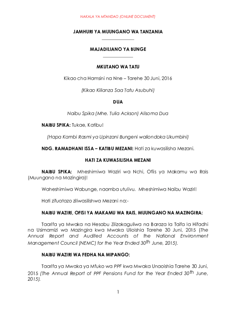 Get the free nakala mtandao (online document) - Parliament of Tanzania