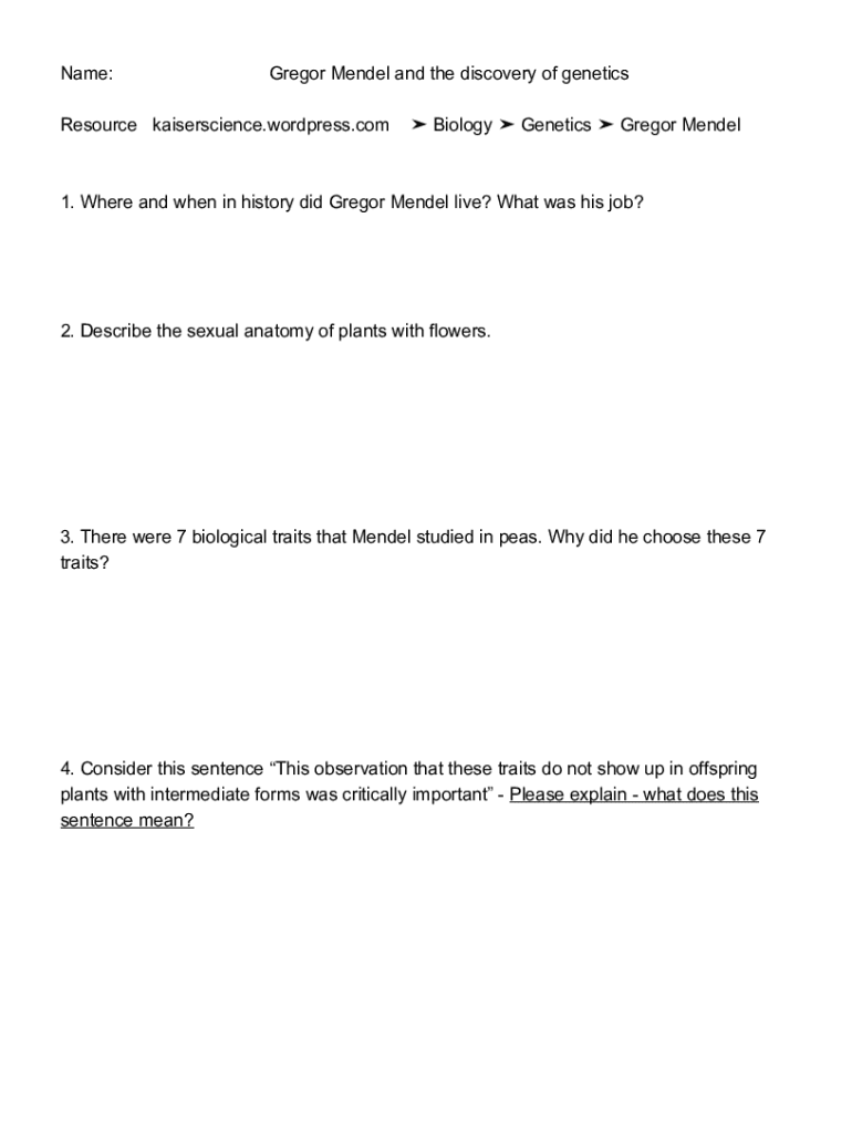 Get the free Name: Gregor Mendel and the discovery of genetics