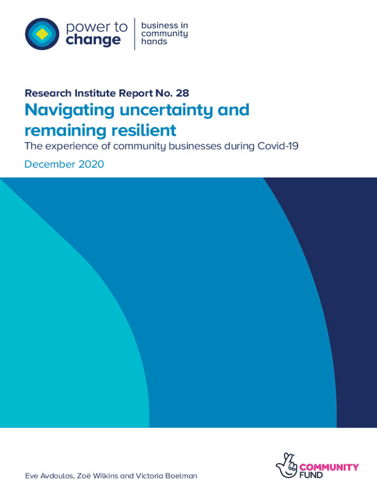 Research Institute Report No. 28Navigating uncertainty and remaining resilience experience of community businesses during COVID-19 December 2020Eve Adults, ZO Wilkins and Victoria BoelmanNavigating