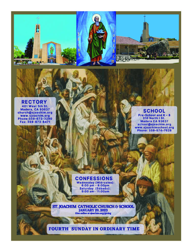 Fr. John Barberton, O.S.J. Pastor fjohn@osjoseph.orgSt. Joachim PreschoolEMERGENCY PHONE559 662 0372Convent 559 674 7085 N C F 10:00 5:00(559) 6733290 Ext. 204 Fr. John Shearer, O.S.J.** **** CCD