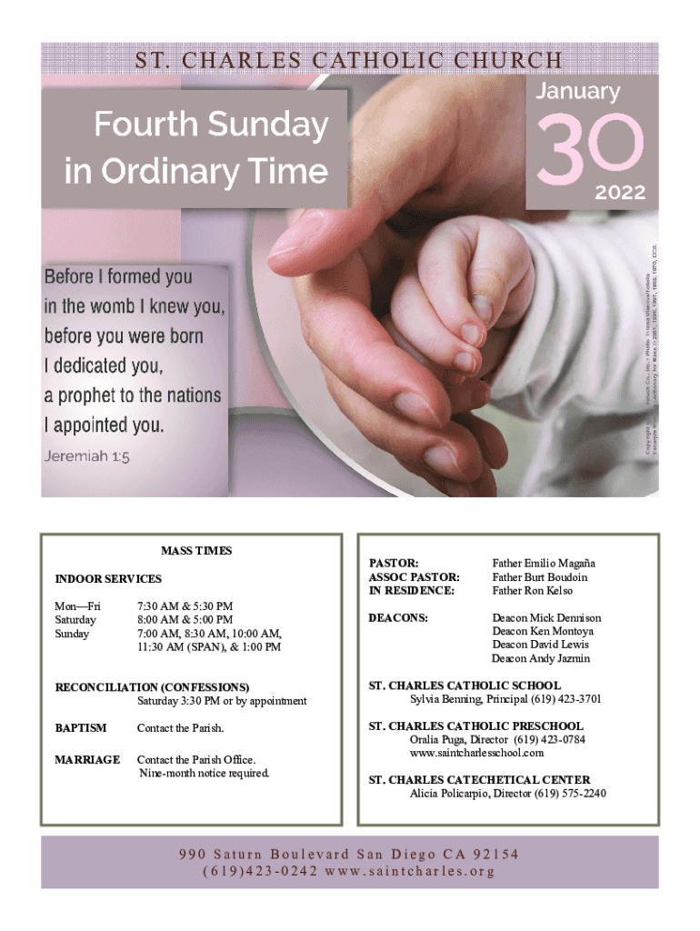 S T. C H A R L E S C AT H O L I C C H U R CH MASS TIMES