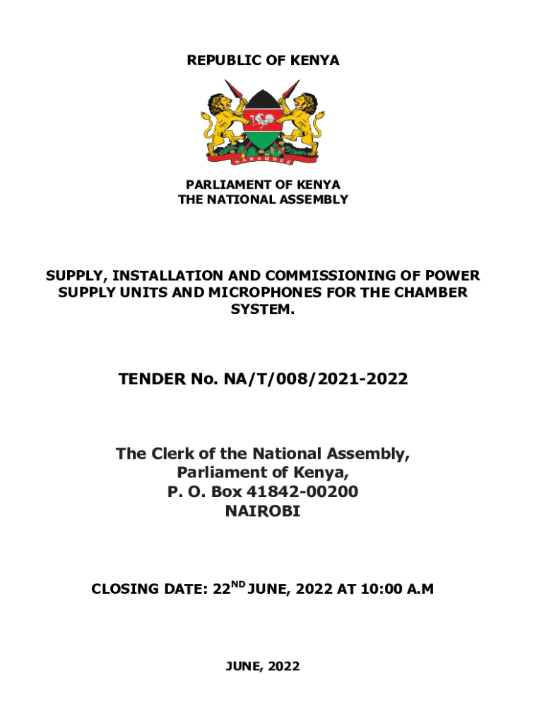 SYSTEM.TENDER No. NA/T/008/20212022The Clerk