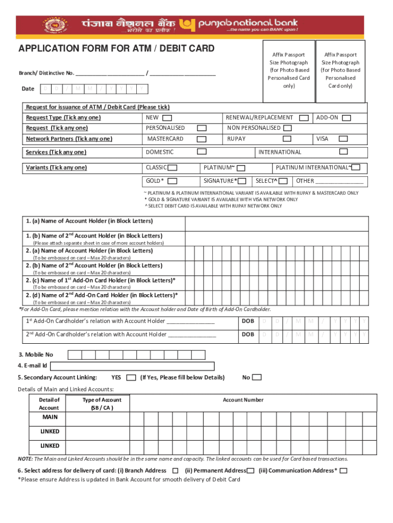 Get the free How to fill Punjab National Bank ATM/DEBIT card apply form