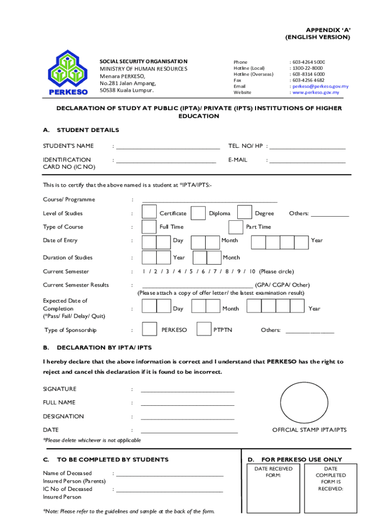 Get the free declaration of study at public (ipta)/ private (ipts ... - Perkeso