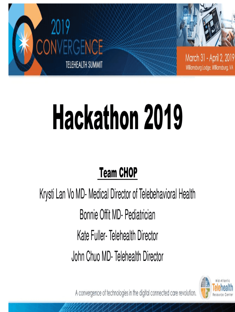 Hackathon 2019 Team CHOP Kristi LAN VO MD Medical Director of Telebehavioral Health Bonnie Of fit MD Pediatrician Kate Fuller Telehealth Director John Chou MD Telehealth Directorate PROBLEM Bullying:
