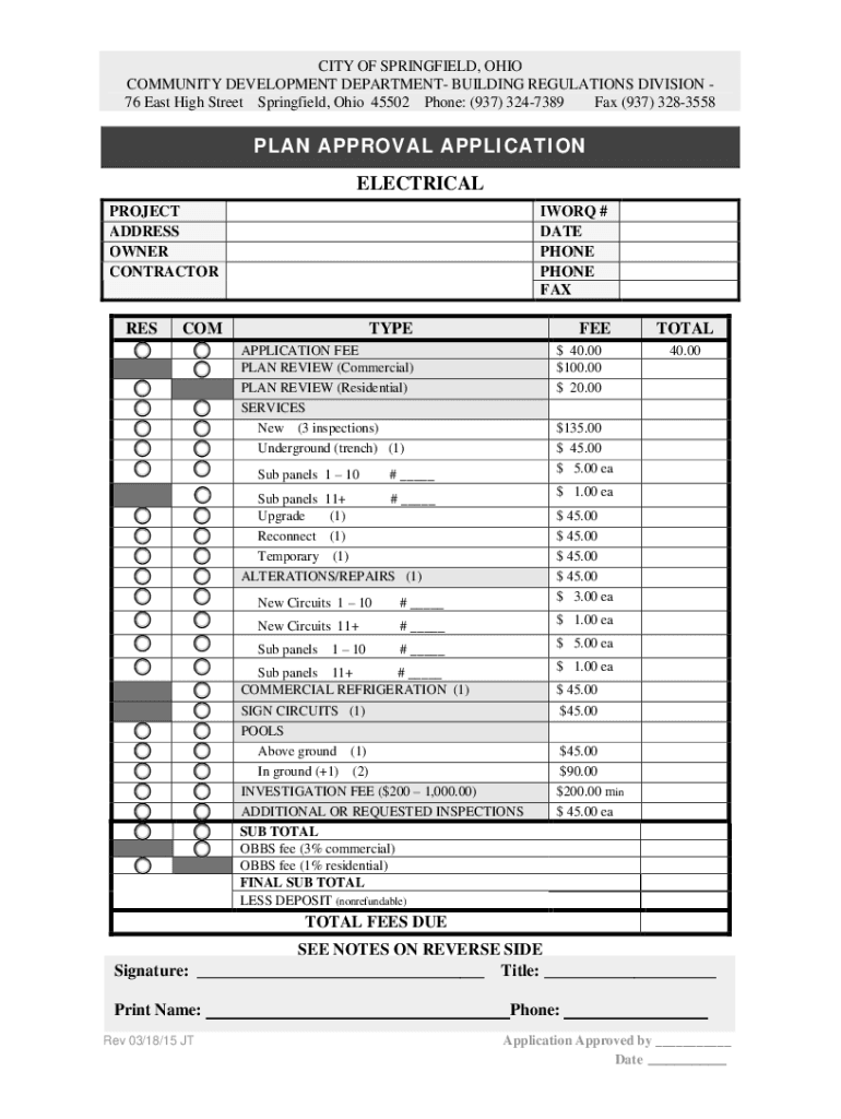 Get the free PLAN APPROVAL APPLICATION ELECTRICAL
