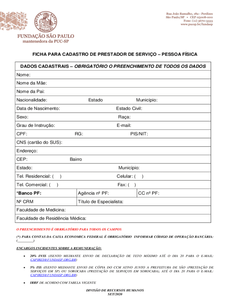 Get the free FICHA PARA CADASTRO DE PRESTADOR DE SERVIO ...