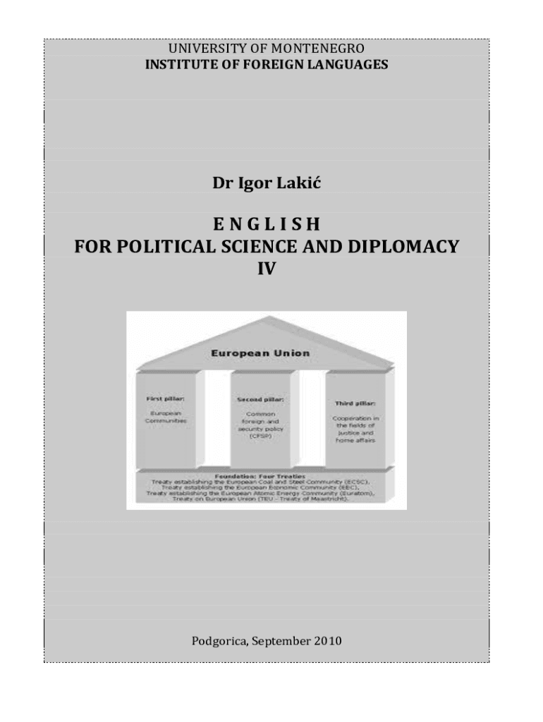 Get the free E N G L I S H FOR POLITICAL SCIENCE AND DIPLOMACY IV