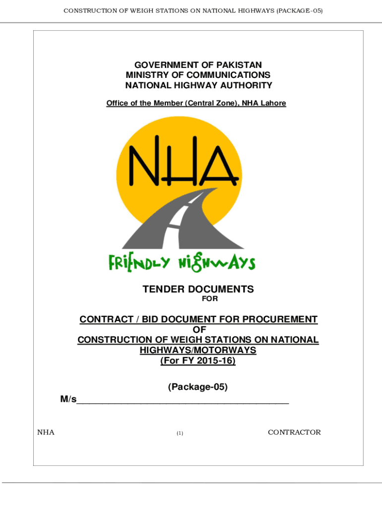CONSTRUCTION OF WEIGH STATIONS ON NATIONAL HIGHWAYS (PACKAGE05)GOVERNMENT OF PAKISTAN MINISTRY OF COMMUNICATIONS NATIONAL HIGHWAY AUTHORITY Office of the Member (Central Zone), NHA LahoreTENDER DOCUMENTS