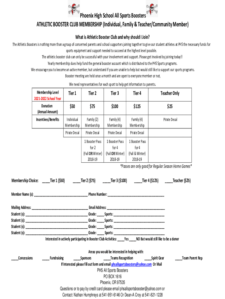 Phoenix High School All Sports Boosters ATHLETIC BOOSTER CLUB MEMBERSHIP (Individual, Family & Teacher/Community Member) What is Athletic Booster Club, and why should I Join? The Athletic Boosters