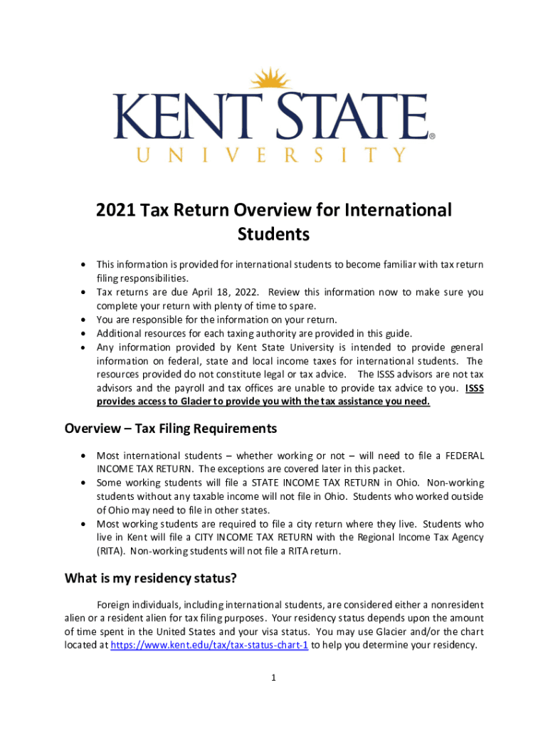 2021 Tax Return Overview for International Students This information is provided for international students to become familiar with tax return filing responsibilities. Tax returns are due April 18,