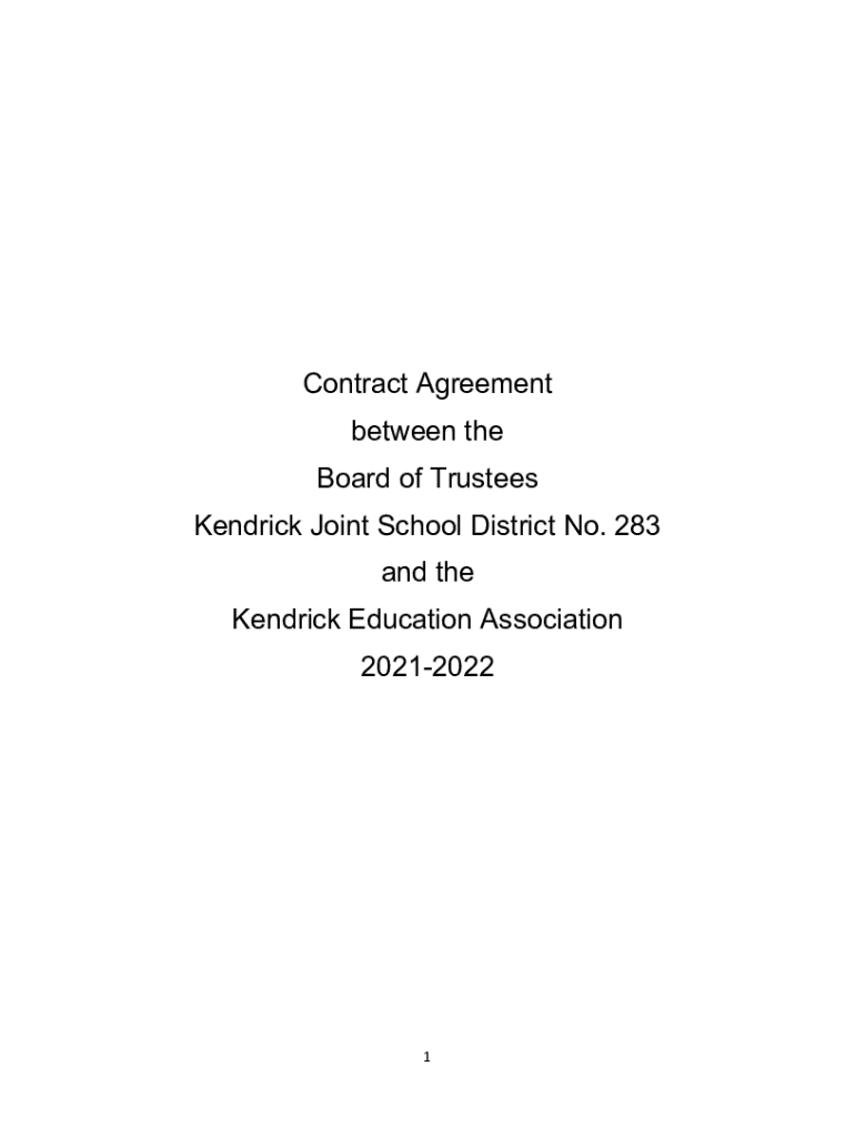 Contract Agreement between the Board of Trustees Kendrick Joint School District No. 283 and the Kendrick Education Association 202120221TABLE OF CONTENTS DEFINITIONS ......................................................................................................