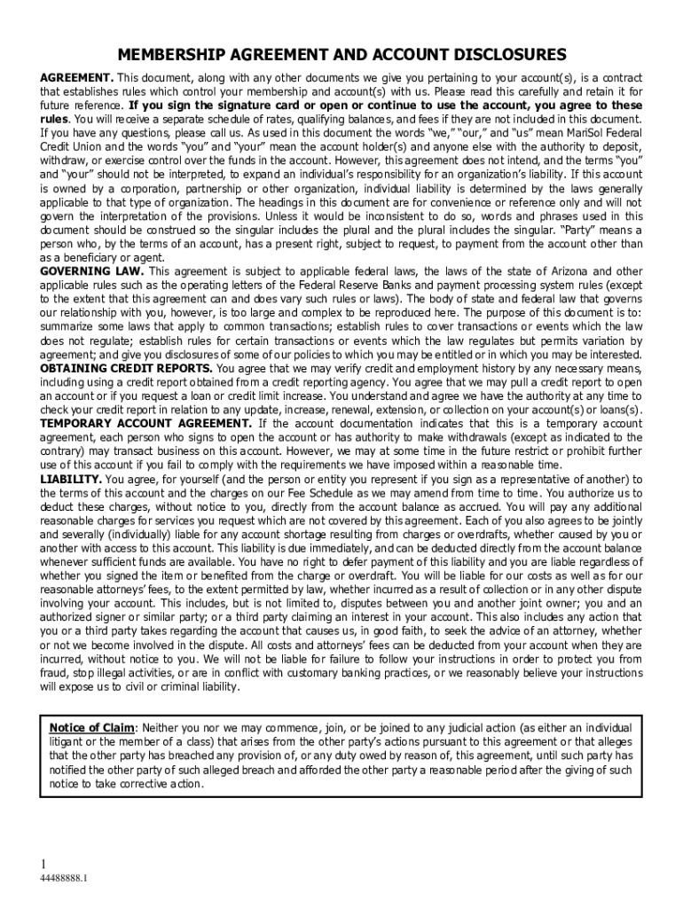 MEMBERSHIP AGREEMENT AND ACCOUNT DISCLOSURES AGREEMENT. This document, along with any other documents we give you pertaining to your account(s), is a contract that establishes rules which control
