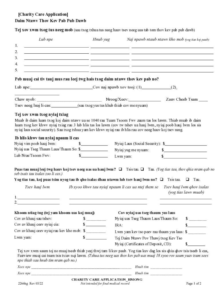 [Charity Care Application]
