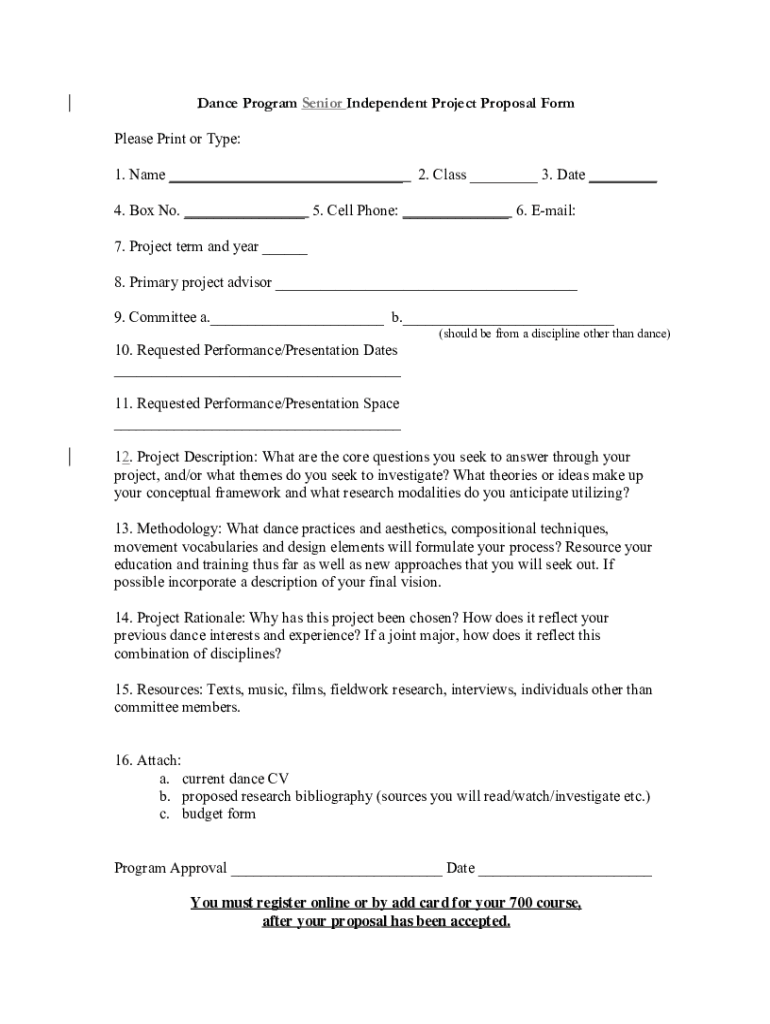 Get the free Dance Program Senior Independent Project Proposal Form Please ...