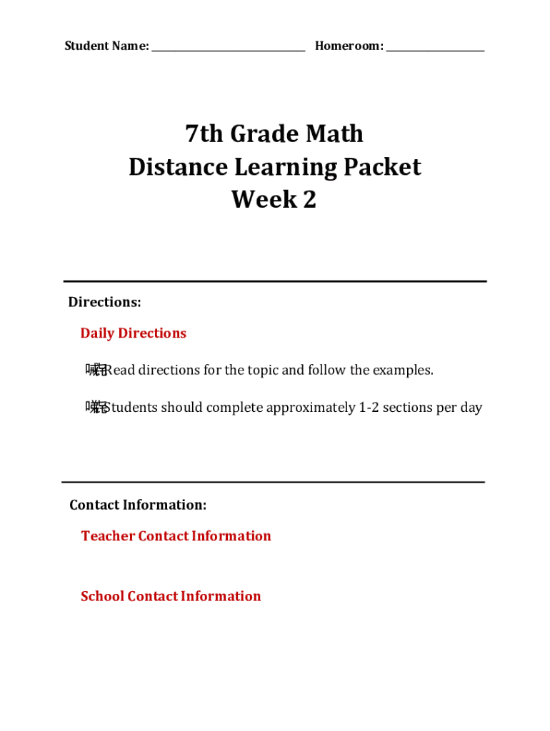 Edit your 7th grade math distance form online