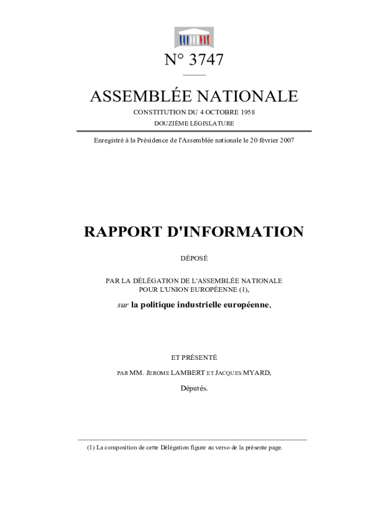 N 3747 ___ASSEMBLE NATIONAL CONSTITUTION DU 4 OCTOBER 1958 DOUGIE LGISLATUREEnregistr la Residence de l\'Assemble national LE 20 frier 2007RAPPORT D\'INFORMATION DUOS PAR LA DURATION DE L\'ASSEMBLE