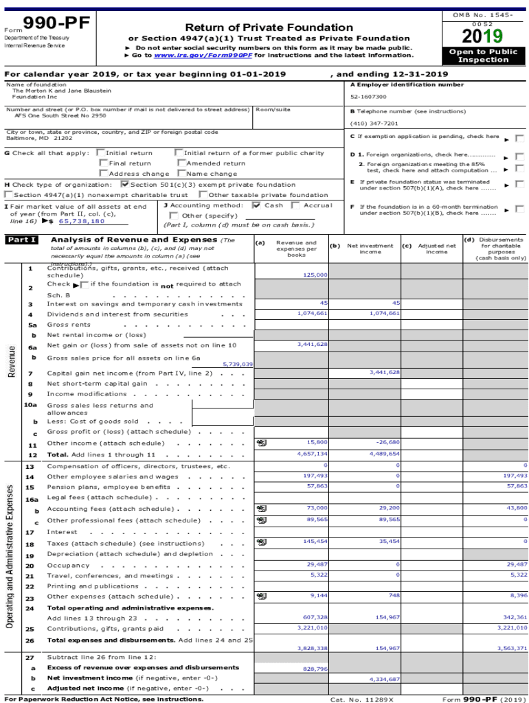 OMB No.1545990PF0052ReturnofPrivateFoundationForm DepartmentoftheTreasury InternalRevenueService2019orSection4947(a)(1)TrustTreatedasPrivateFoundation Donotentersocialsecuritynumbersonthisformasitmaybemadepublic.