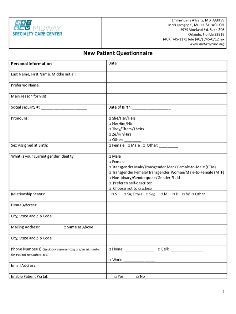 Get the free New Pa ent Ques onnaire - Midway Specialty Care Center