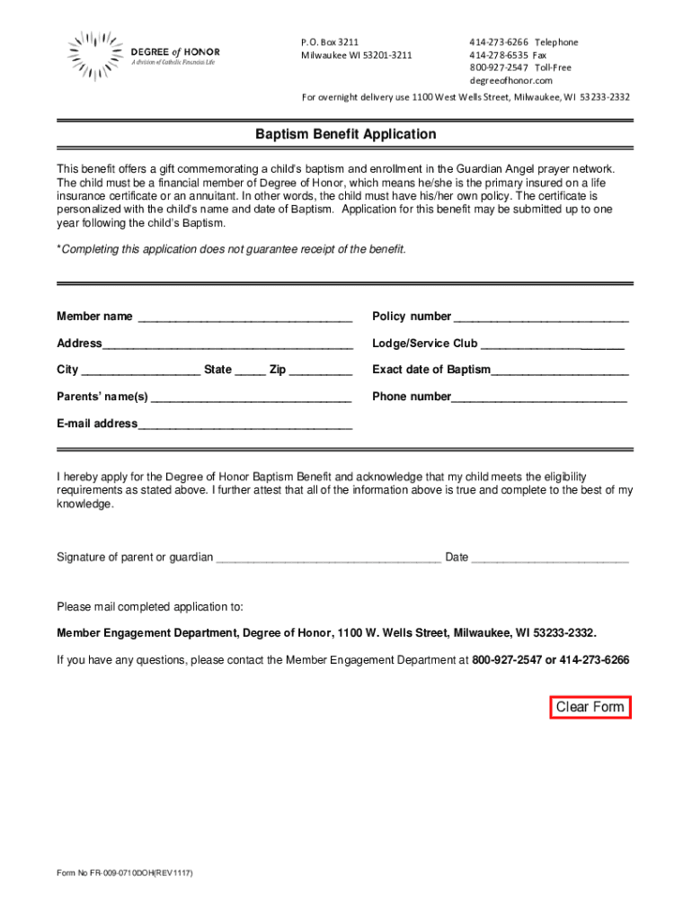 P.O. Box 3211 Milwaukee WI 5320132114142736266 Telephone 4142786535 Fax 8009272547 Toll-free degreeofhonor. Comfort overnight delivery use 1100 West Wells Street, Milwaukee, WI 532332332Baptism Benefit
