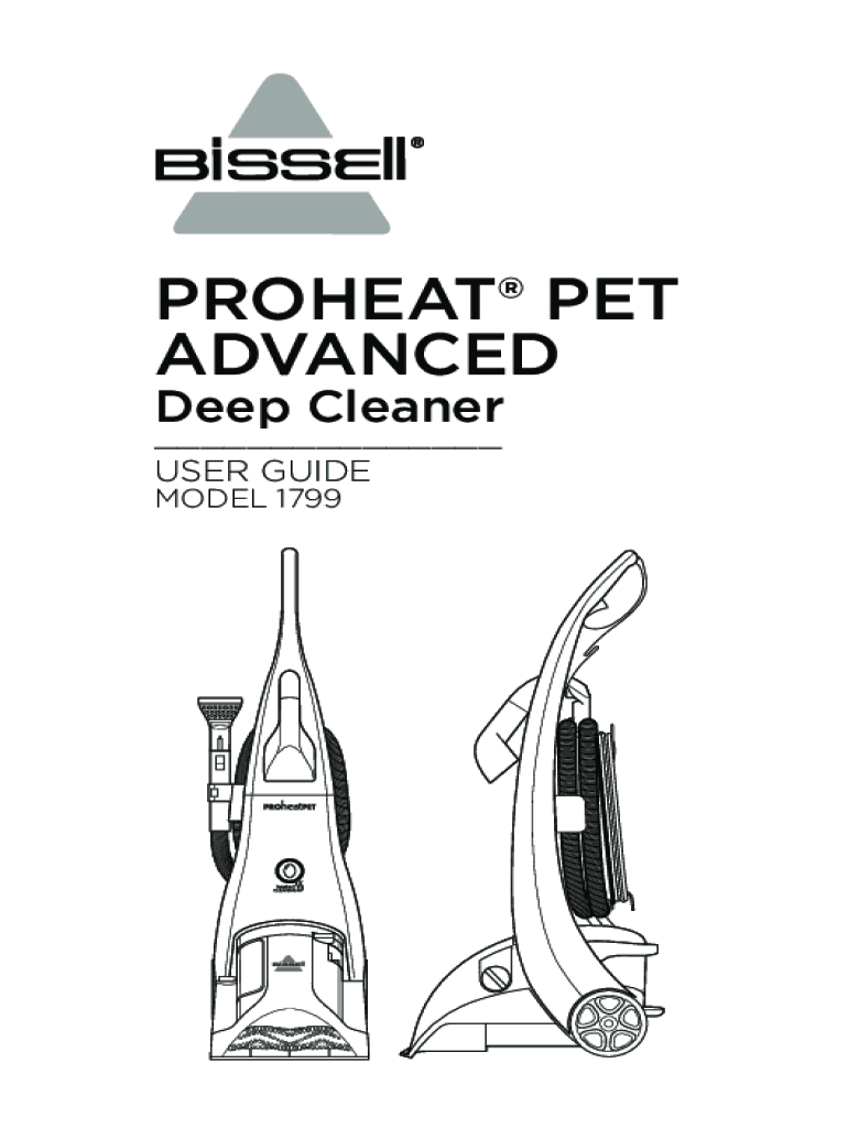 PREHEAT PET ADVANCED Deep Cleaner ___ USER GUIDE MODEL 1799IMPORTANT SAFETY INSTRUCTIONS READ ALL INSTRUCTIONS BEFORE USING YOUR DEEP CLEANER. When using an electrical appliance, basic precautions