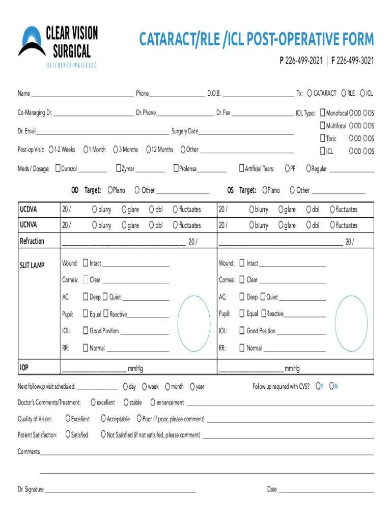 CATARACT/RLE /ICL POSTOPERATIVE FORM