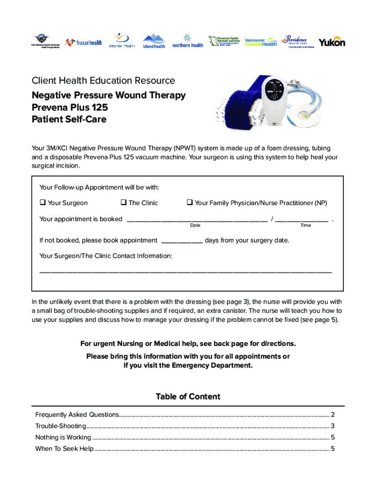 Client Health Education Resource Negative Pressure Wound Therapy Prevent Plus 125 Patient Welfare Your 3M/PCI Negative Pressure Wound Therapy (NWT) system is made up of a foam dressing, tubing and