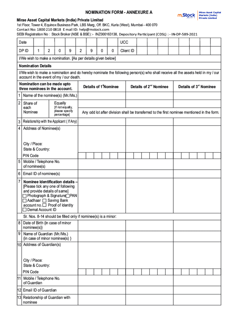 NOMINATION FORM Appendix Admiral Asset Capital Markets (India) Private LimitedMirae Asset Capital Markets (India) Private Limited 1st Floor, Tower 4, Equinox Business Park, LBS Mary, Off. BKC, Karla