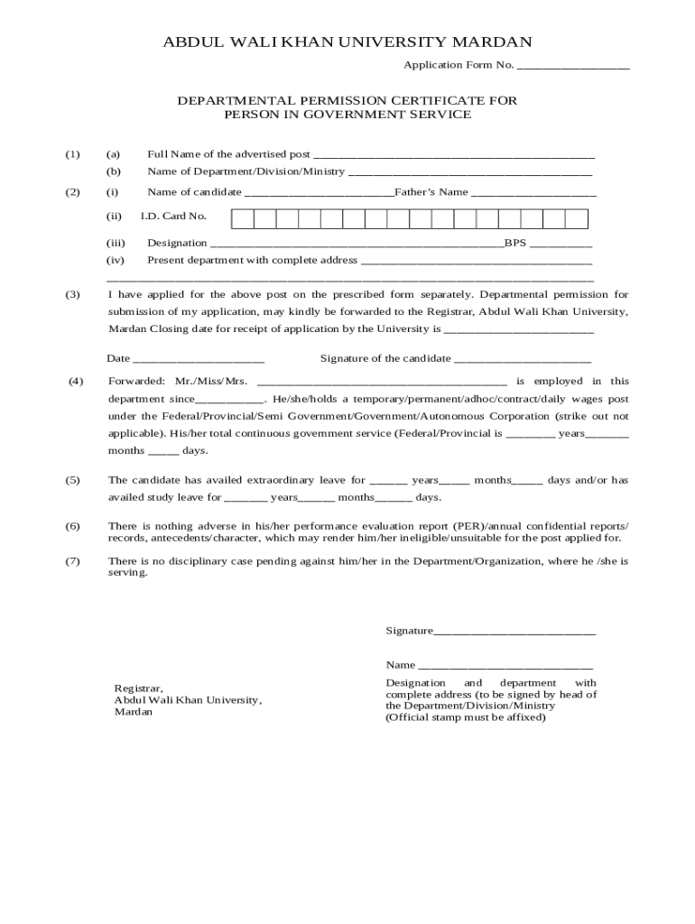 Frequently asked questions about the form Departmental Permission Certificate Education Department Kpk
