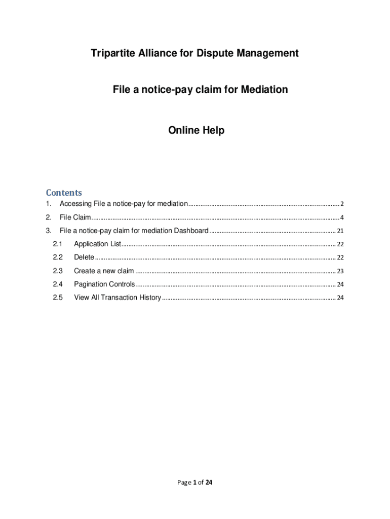 Tripartite Alliance for Dispute ManagementFile a notice pay-claim for MediationOnline Malcontents 1. Accessing File a notice pay for mediation ......................................................................................