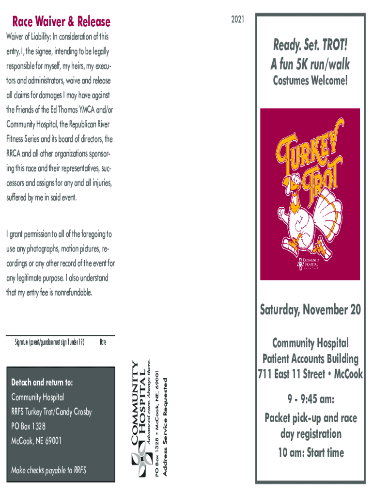 Race Waiver & Release2021Waiver of Liability: In consideration of this entry, I, the signee, intending to be legally responsible for myself, my heirs, my executors and administrators, waive and release