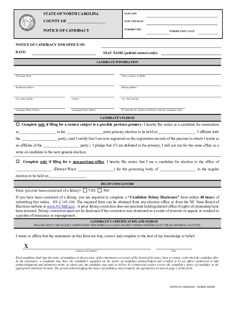 Get the free notice of candidacy. NCSBOE 201906